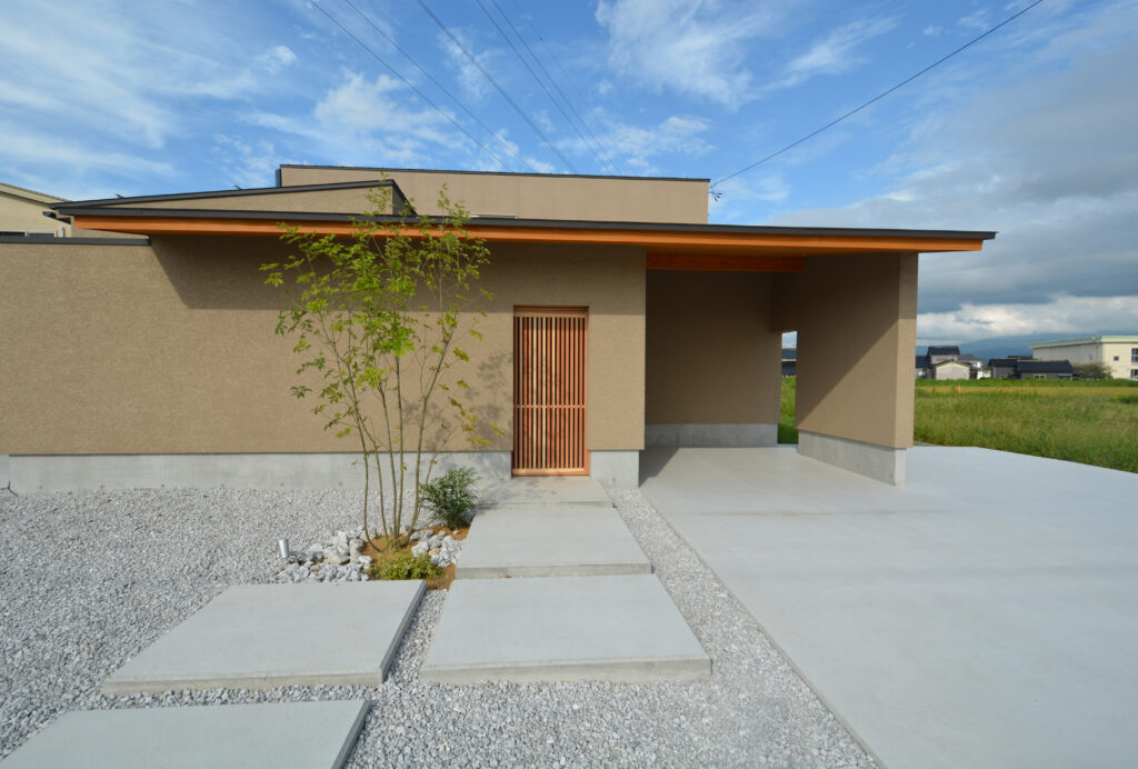 一見相反する【外からの視線を感じさせない】と【明るく開放的な家】ご夫婦双方の要望を叶えた家。 また、玄関やLDKの床の形、勾配天井など随所で魅せる『ななめ』を取り入れたデザインで オリジナルティ溢れるお家に仕上がりました。